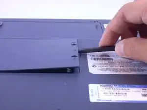 С помощью отвертки с плоской головкой или лопатки вставьте плоскую часть отвертки в зазор между пластиковым элементом и остальной частью ноутбука. Отогните пластиковый элемент, двигая отвертку вверх и вниз.