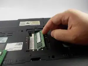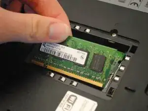 Чтобы заменить оперативную память, вставьте новый чип оперативной памяти PC2-5300 1 ГБ, который вы подготовили, обратно в ноутбук.