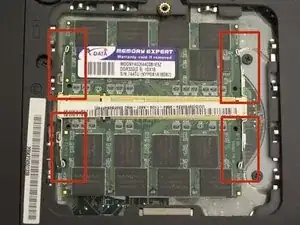Найдите четыре серебряные скобы, удерживающие планки оперативной памяти.