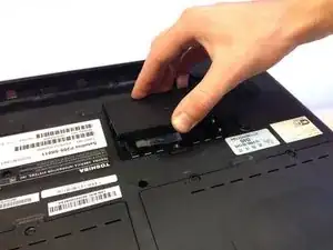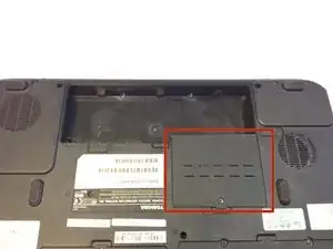 Найдите крышку слота оперативной памяти на нижней части ноутбука. Крышка слота оперативной памяти расположена рядом с гнездом аккумулятора.