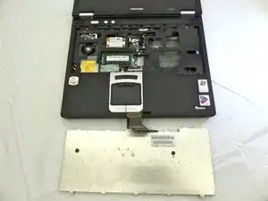 Аккуратно отсоедините плёнку разъёма клавиатуры от материнской платы, потянув её вверх пальцами.