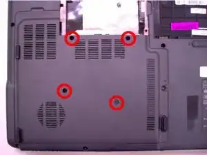 Удалите четыре винта, крепящих крышку модуля оперативной памяти/теплоотведения.