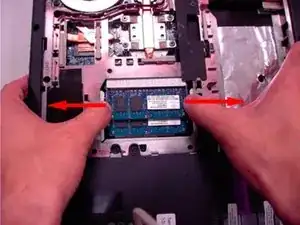 Освободите зажимы с каждой стороны чипа, одновременно отводя каждый зажим от оперативной памяти.