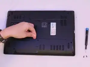 Снимите два винта Phillips, крепящие нижнюю крышку.