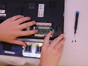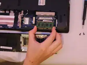Поднимите ослабленную нижнюю крышку, чтобы получить доступ к модулю оперативной памяти.