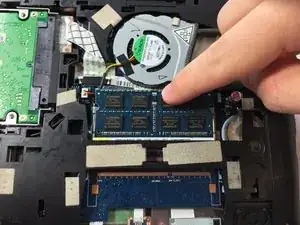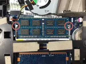 Отстегните две металлические скобки, которые удерживают оперативную память на месте, отодвинув металлические клипсы в стороны от самой оперативной памяти.