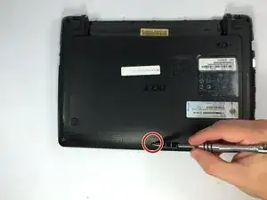 Закройте нетбук и переверните его так, чтобы задняя часть была направлена вверх.