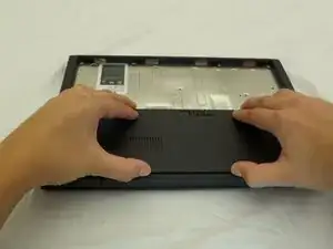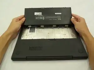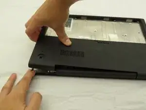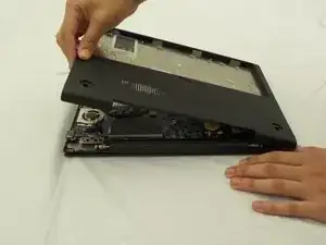 Начинайте от места, где корпус ноутбука и экран встречаются, отщепите нижнюю крышку от остального ноутбука.