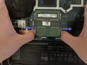 Осторожно захватите металлические защёлки и отведите их от слота оперативной памяти.