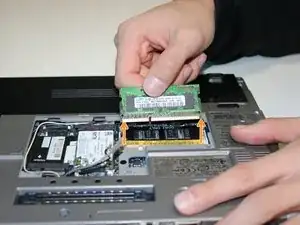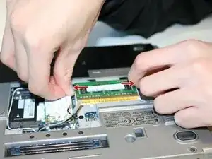 Оперативная память должна затем вытолкнуться и может быть легко извлечена, потянув от слота.