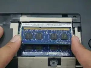 Затем оперативная память поднимется и будет находиться под углом к ноутбуку.