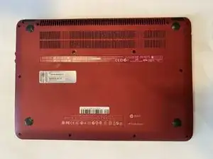 Переверните ноутбук так, чтобы его нижняя часть была обращена к вам.