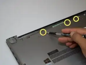 Отогните резинки с углов задней части ноутбука, чтобы открыть доступ к винтам.