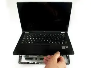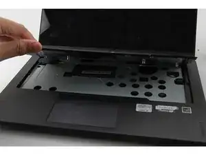 Приподнимите край клавиатуры, ближайший к тачпаду.
