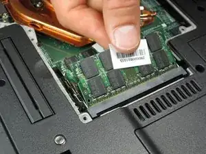 Участите внешнюю часть модуля памяти и потяните его наружу, чтобы удалить его из порта.