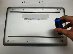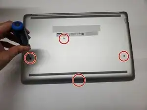 Снимите две полоски, чтобы открыть доступ к другим винтам.