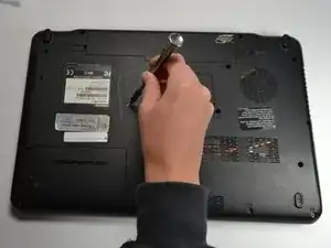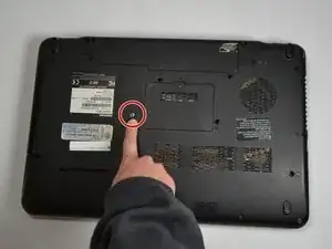 Удалите винт Philips 5 мм с нижней стороны ноутбука.