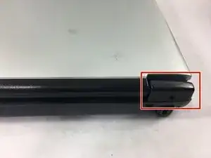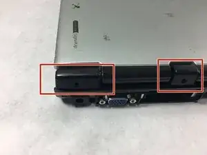 Необходимо открыть защёлки на задней панели ноутбука для доступа к внутренним компонентам.