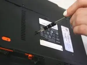 Удалите черный винт, удерживающий оптический привод на месте, с помощью отвертки Philips #0.