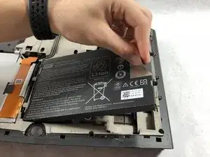 Используя отвертку PH1, ослабьте два винта справа от батареи.