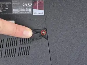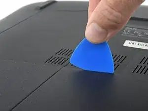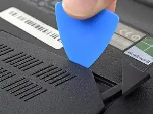 Используйте инструмент для открытия, чтобы приподнять маленькую резиновую заглушку в верхнем правом углу двери доступа к оперативной памяти.