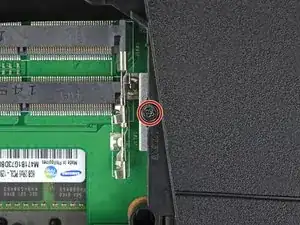 Удалите винт Phillips #00 длиной 5,3 мм, фиксирующий дверь доступа к оперативной памяти.