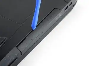Вставьте инструмент для открытия в зазор между оптическим приводом и ноутбуком.