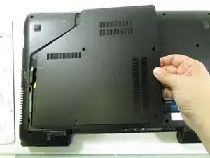 При сборке привода положите ноутбук задней частью вниз. Затем нажмите привод до упора. В противном случае привод может застрять и его будет трудно собрать.