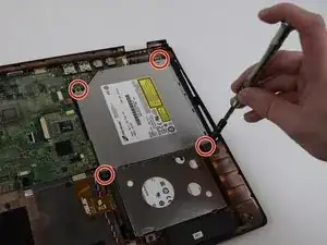 Удалите четыре винта J0 длиной 5 мм, окружающих оптический привод.