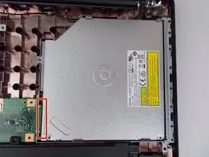 При замене убедитесь, что оптический привод подключен к гнезду материнской платы (обозначено красным прямоугольником).