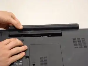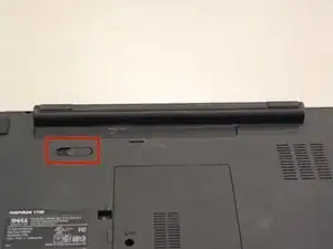 Переверните ноутбук так, чтобы нижняя сторона была видна.