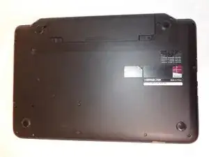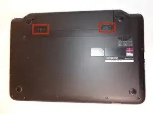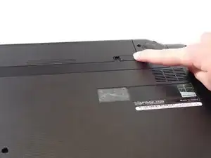 Переверните ноутбук вверх дном так, чтобы батарея была обращена от вас.