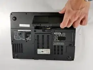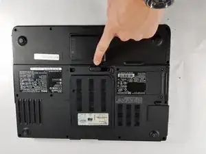 Найдите на нижней части ноутбука переключатель фиксатора батареи.