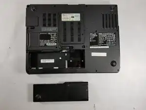 Найдите выемку на ноутбуке, чтобы поддеть и извлечь батарею из отсека.