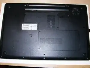 Переверните компьютер так, чтобы он оказался нижней стороной вверх. Разместите компьютер перед собой передней частью к себе.