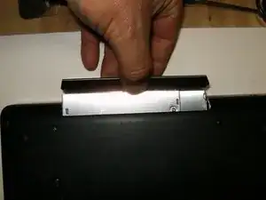 Сдвиньте фиксатор батареи, чтобы освободить батарею. Отведите батарею и выньте её.