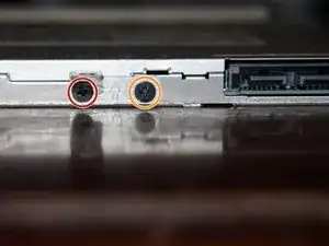 Удалите винт, удерживающий оптический привод. Для этого используйте отвёртку Phillips #0. После удаления этого винта выдвиньте оптический привод.