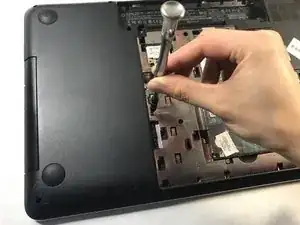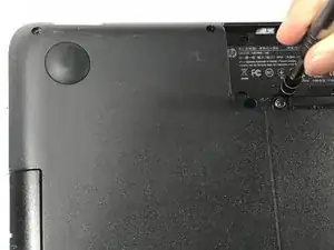 С помощью крестовой отвертки Phillips #00 отвинтите один винт Phillips 3.0 x 10.5 мм, который крепит сервисную панель к ноутбуку.