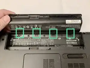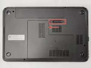 УДАЛЕНИЕ БАТАРЕИ: Переверните ноутбук так, чтобы сторона с батареей была сверху.