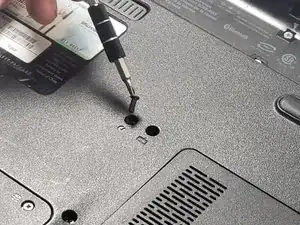 Найдите винт с изображением диска под ним. Он расположен почти в центре устройства.