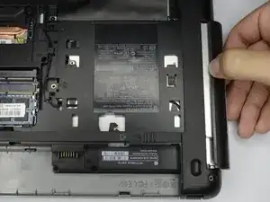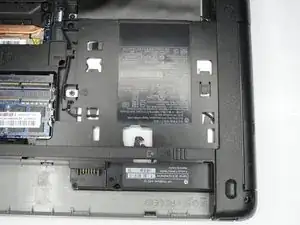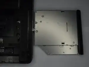 Найдите оптический привод, рядом с батареей, с правой стороны.