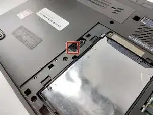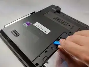 Удалите ODD, используя пластиковый инструмент для открывания, чтобы вытолкнуть привод из боковой стороны ноутбука.