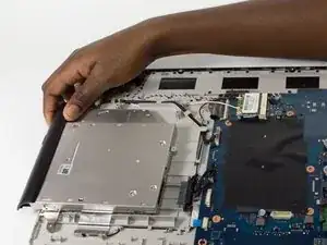 Вставьте пластиковую вскрывающую инструмент между стыком задней панели и ноутбуком.
