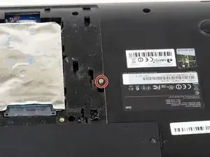 Найдите винт между жестким диском и модельной меткой. Затем удалите винт M2.5X5 с помощью отвертки Phillips #0.