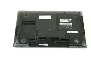 Положите ноутбук так, чтобы нижняя сторона была обращена вверх.