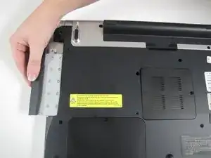 Переверните ноутбук экраном вниз на рабочей поверхности.