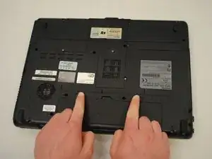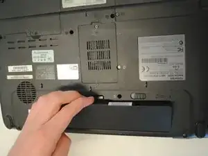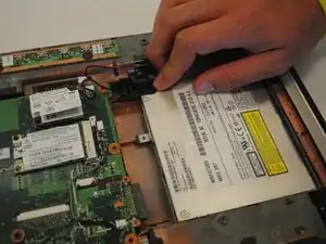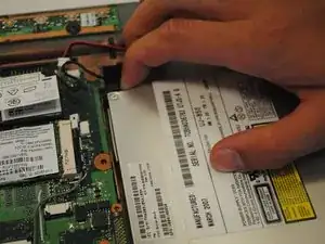 Продолжайте сдвигать привод, пока не сможете извлечь его из ноутбука.