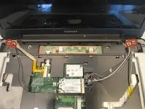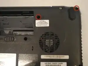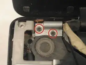 Открутите четыре винта, указанных на фото, с помощью отвёртки Phillips 00. Слева направо: 6 мм винт с полукруглой головкой, 3 мм винт с плоской головкой, 6 мм винт с полукруглой головкой, 6 мм винт с полукруглой головкой.