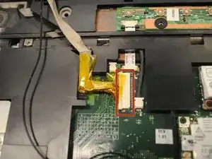 Для снятия клавиатуры необходимо отключить ленточный кабель.