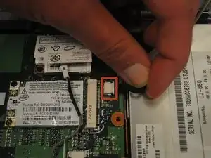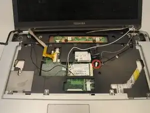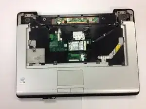 Снимите крышку динамика. Ваш ноутбук будет выглядеть так, как показано на этом фото, после снятия крышки динамика.